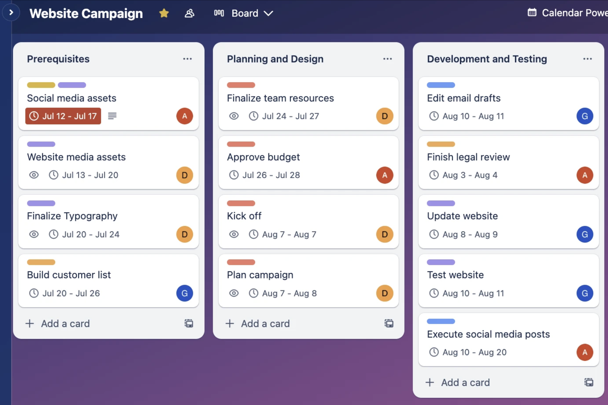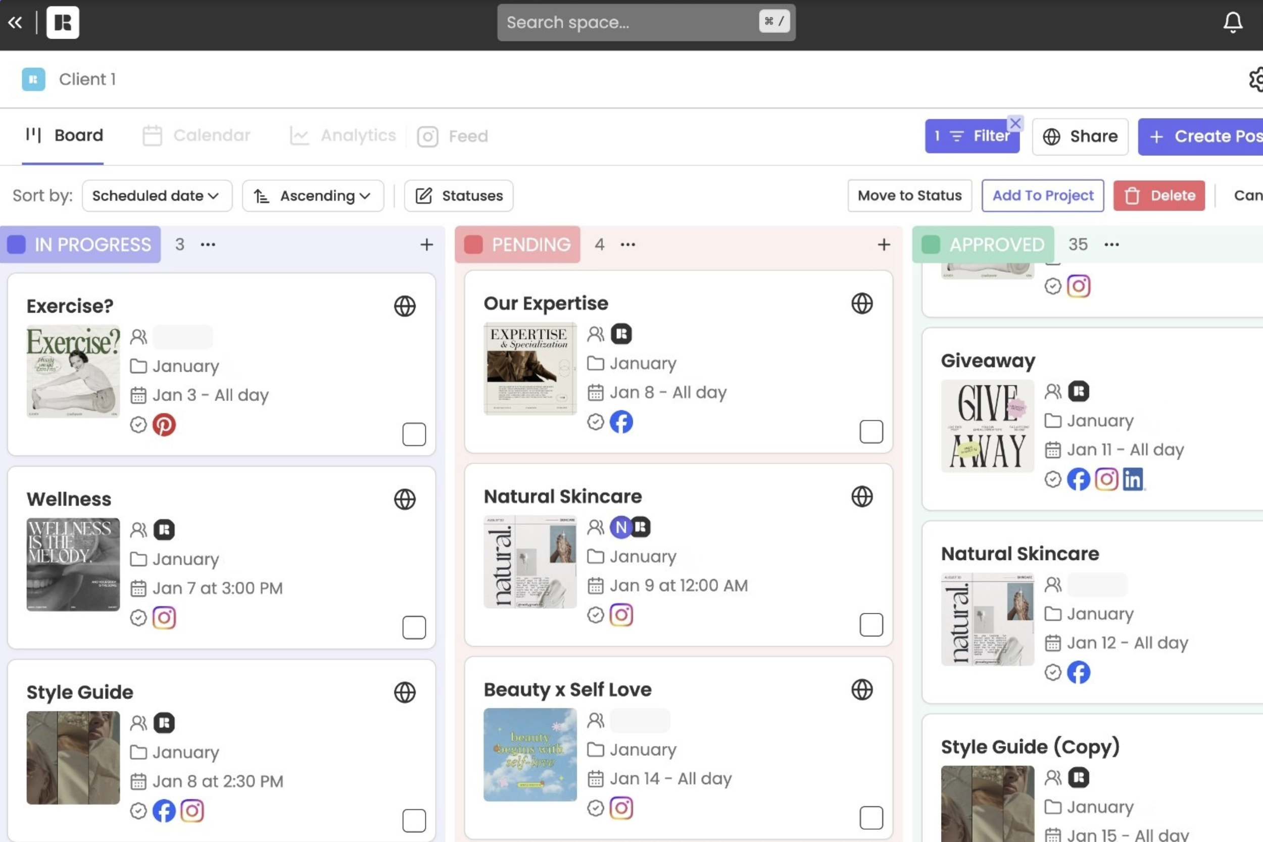 Use a shared board to track content stages from idea to publicationAssign responsibilities for copy, design, and approvalsKeep campaign timelines visible to the entire team