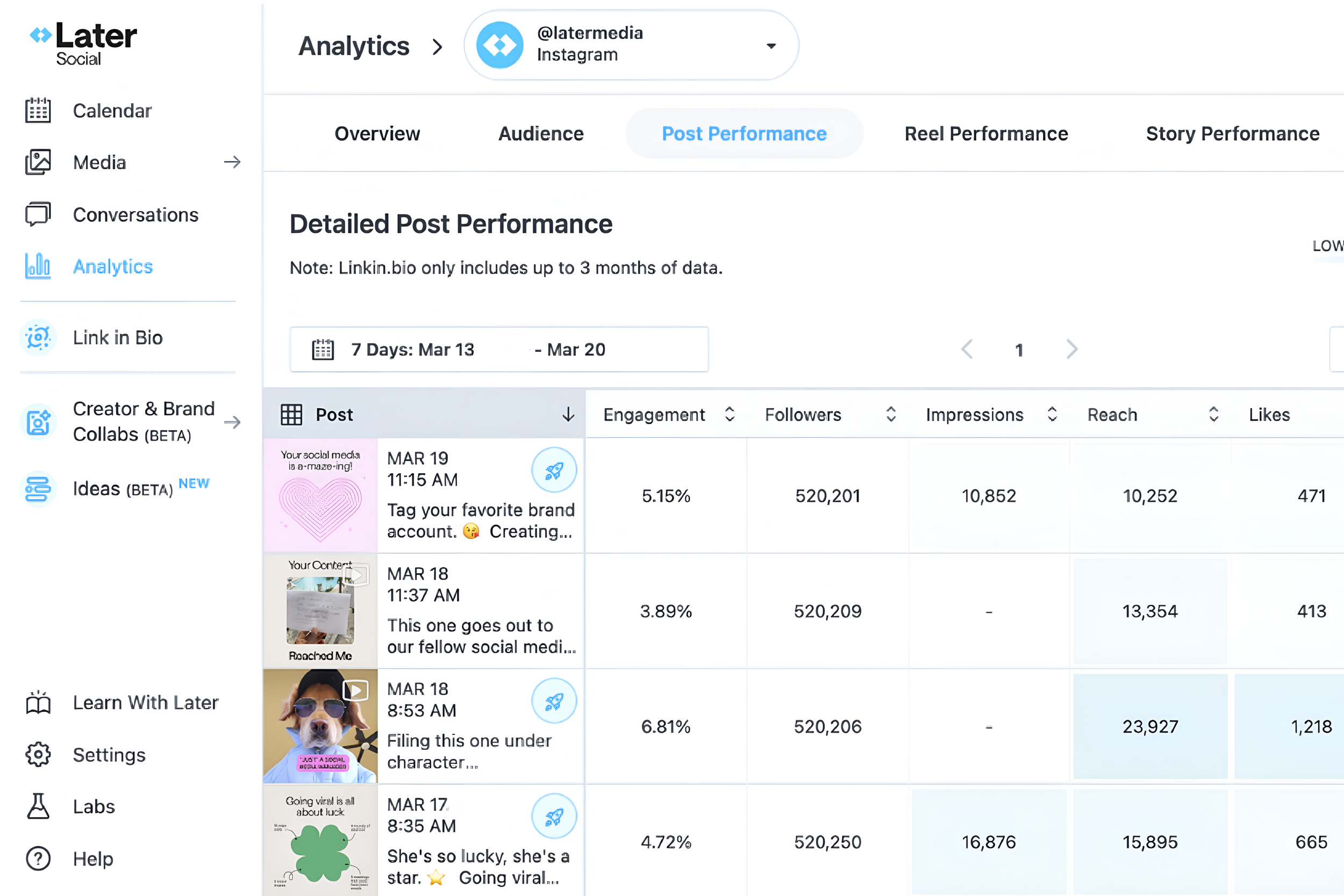 Teams often organise their content calendars using platforms like Later where posts can be visualised weeks in advance.